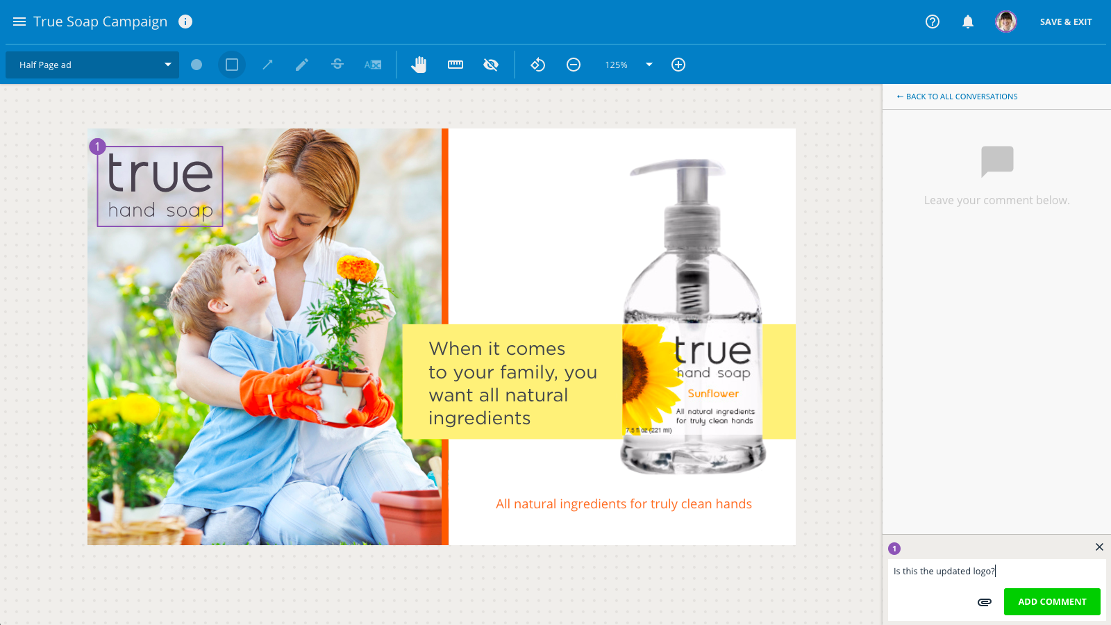 When reviewing an asset, easily provide feedback by marking up the assets using the intuitive annotation tools in the toolbar. Each annotation will automatically be associated with a comment.